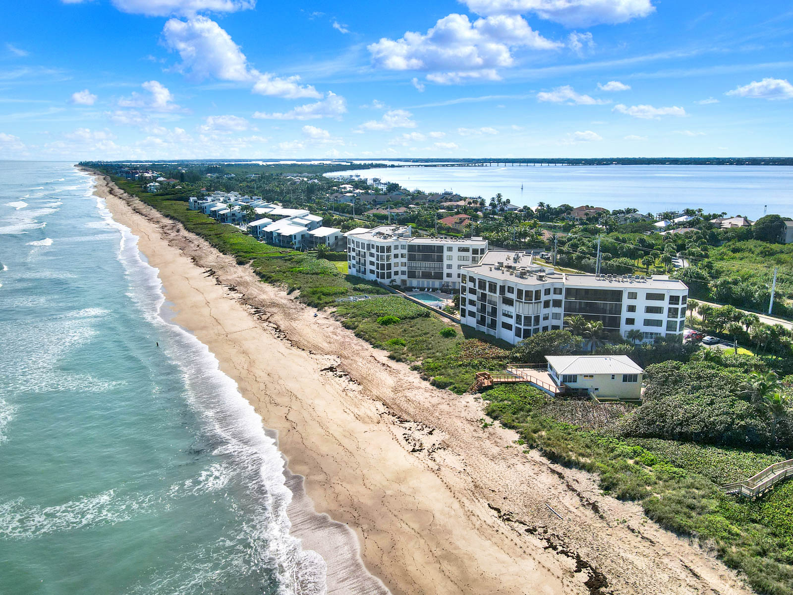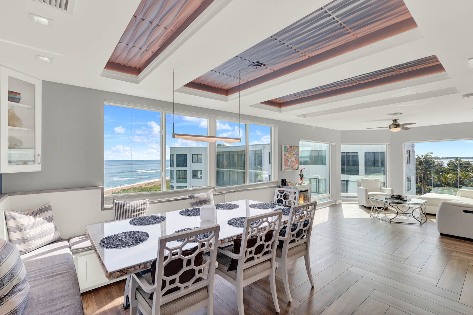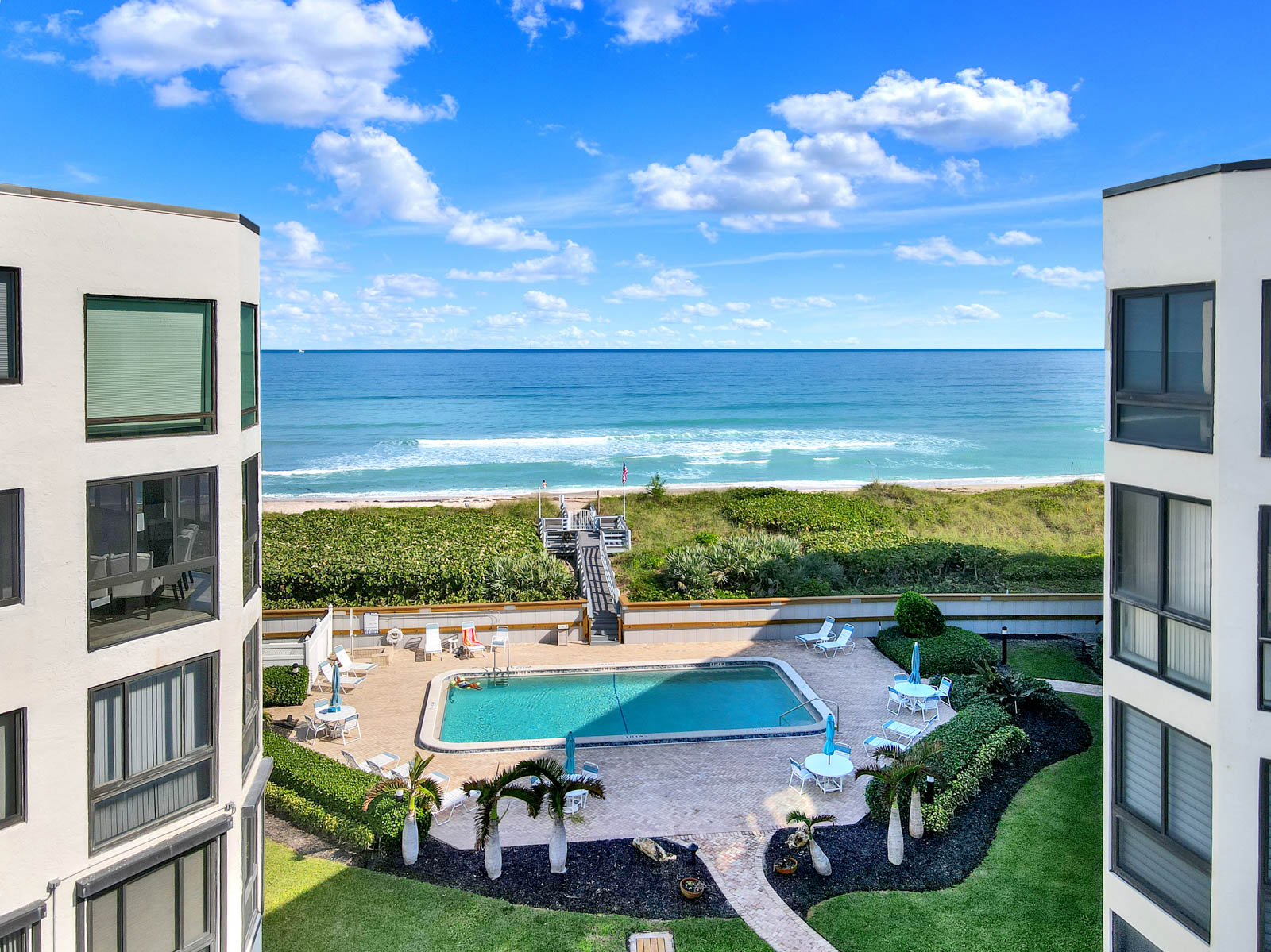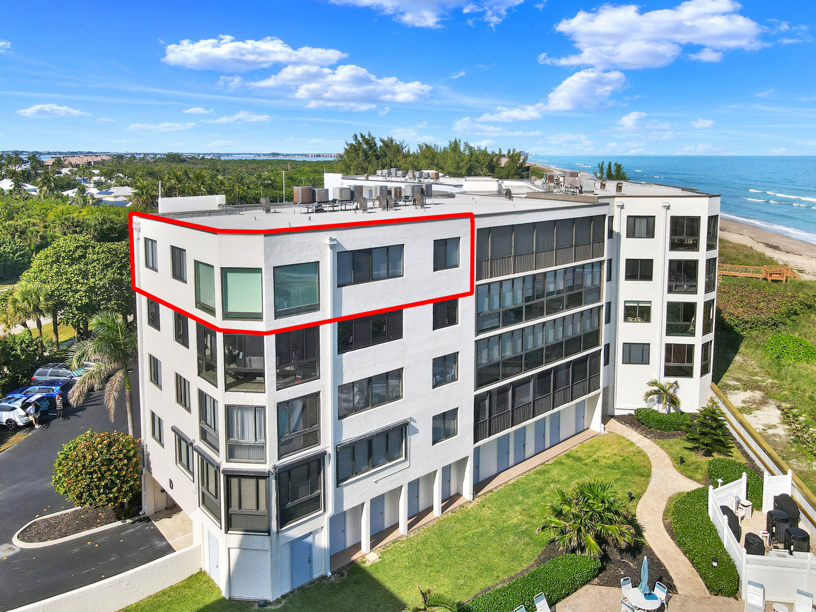 This custom-built top floor SE Corner condo emulates what beach living is all about. As shown in the attached pictures you will see numerous extras added throughout, tray recess lighting in the ceiling, granite countertops, and impact glass windows and much more. Spectacular views looking east over the ocean and west toward the intercoastal will adorn each day of your stay. This Ocean View complex offers you a plethora of amenities. Undercover parking, oceanside pool with social room, a riverside clubhouse and pool and outdoor kitchen, tennis courts, BBQ grills, and great beach access for those long strolls down the sundrenched sandy shoreline.