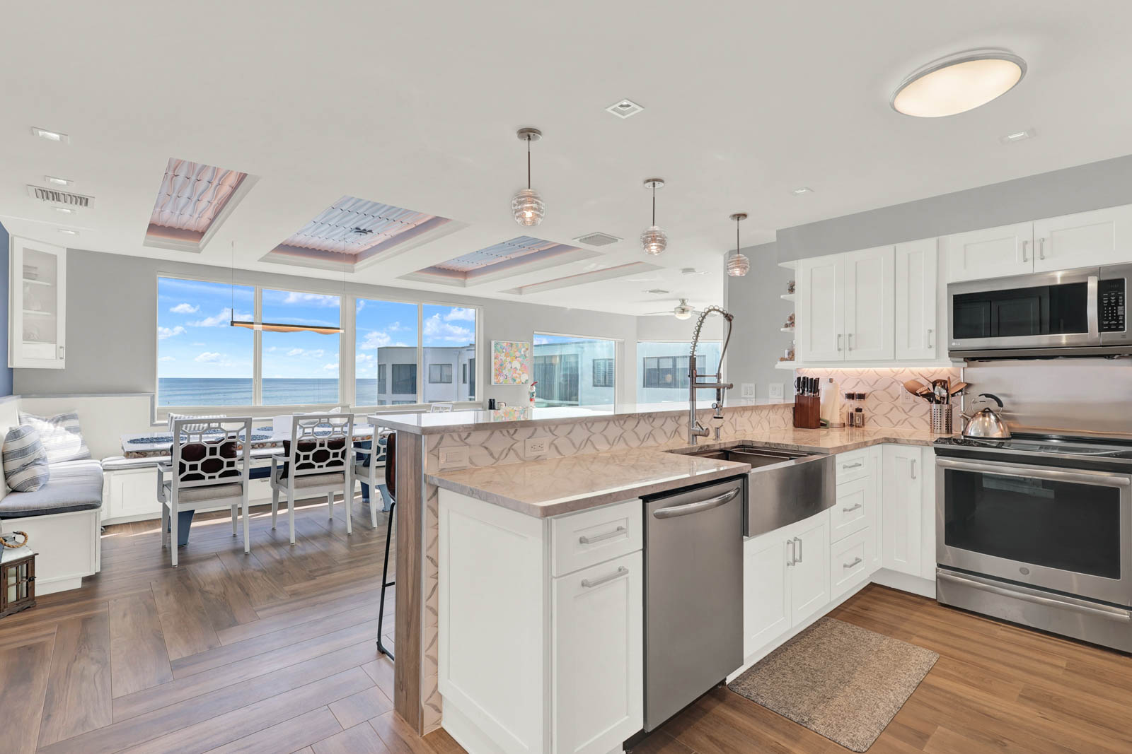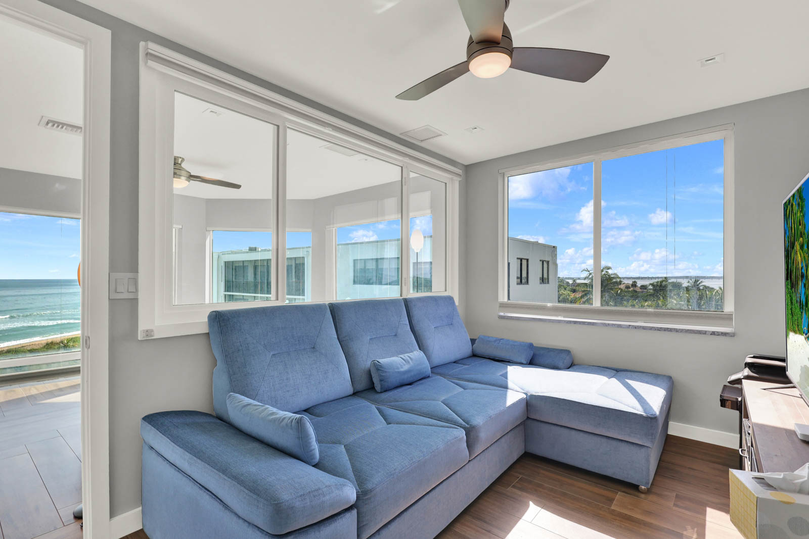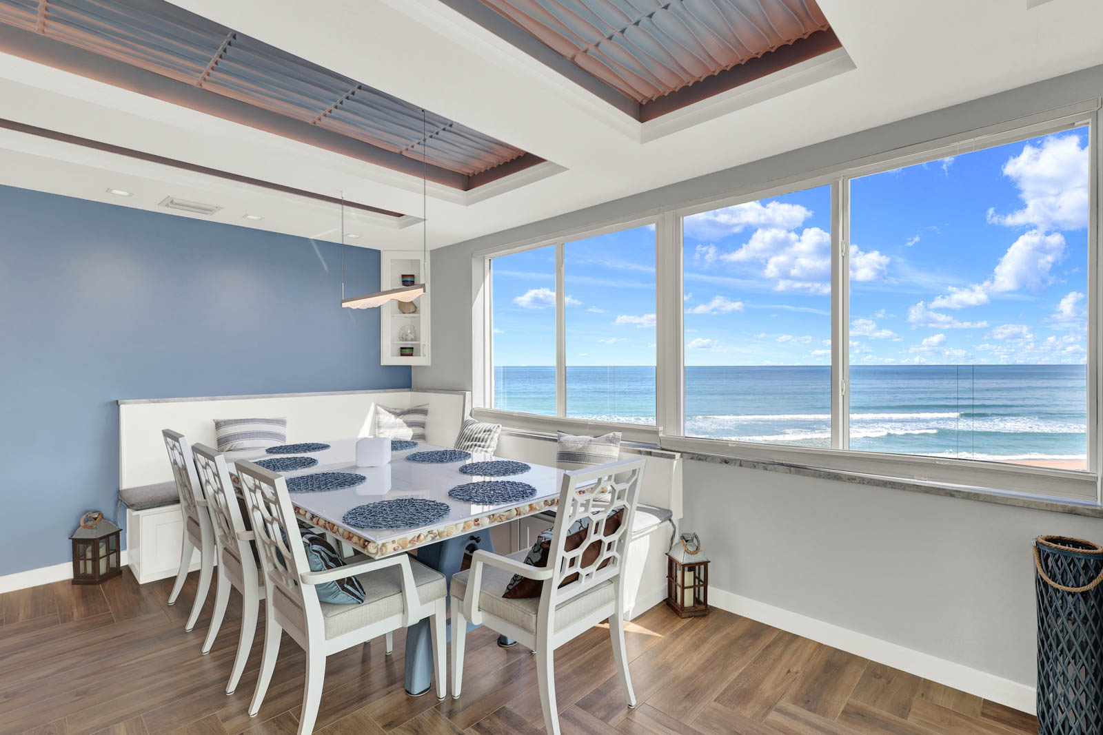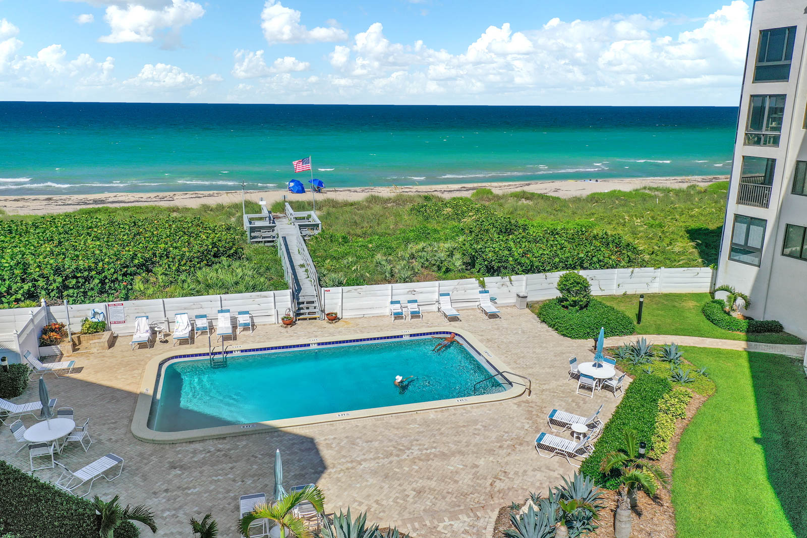 This custom-built top floor SE Corner condo emulates what beach living is all about. As shown in the attached pictures you will see numerous extras added throughout, tray recess lighting in the ceiling, granite countertops, and impact glass windows and much more. Spectacular views looking east over the ocean and west toward the intercoastal will adorn each day of your stay. This Ocean View complex offers you a plethora of amenities. Undercover parking, oceanside pool with social room, a riverside clubhouse and pool and outdoor kitchen, tennis courts, BBQ grills, and great beach access for those long strolls down the sundrenched sandy shoreline.