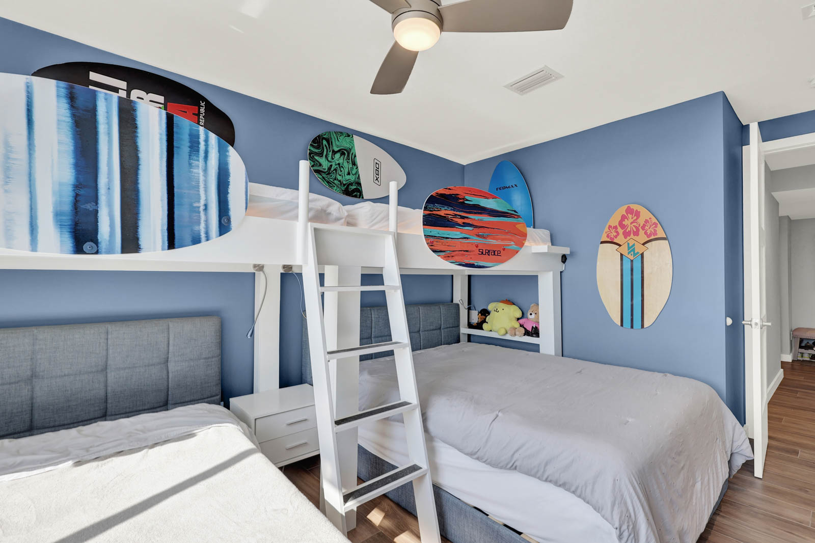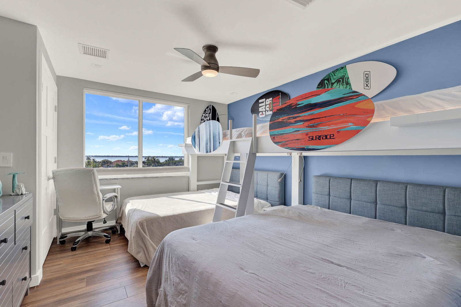 - Bedroom 2: 2 Queen beds & a Single Bunk Bed